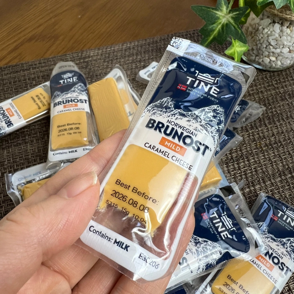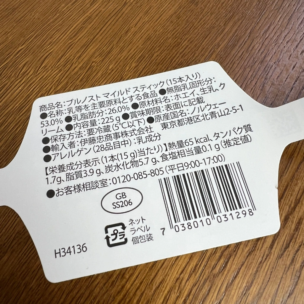 1本約100円。スーパーで売っている6Pチーズなどと比べると、「ちょっと贅沢なおやつ」という価格帯ですね。 でも、ノルウェーからの輸入品で、この珍しい味を切る手間なしのスティックで楽しめるなら、私はアリだと思います!