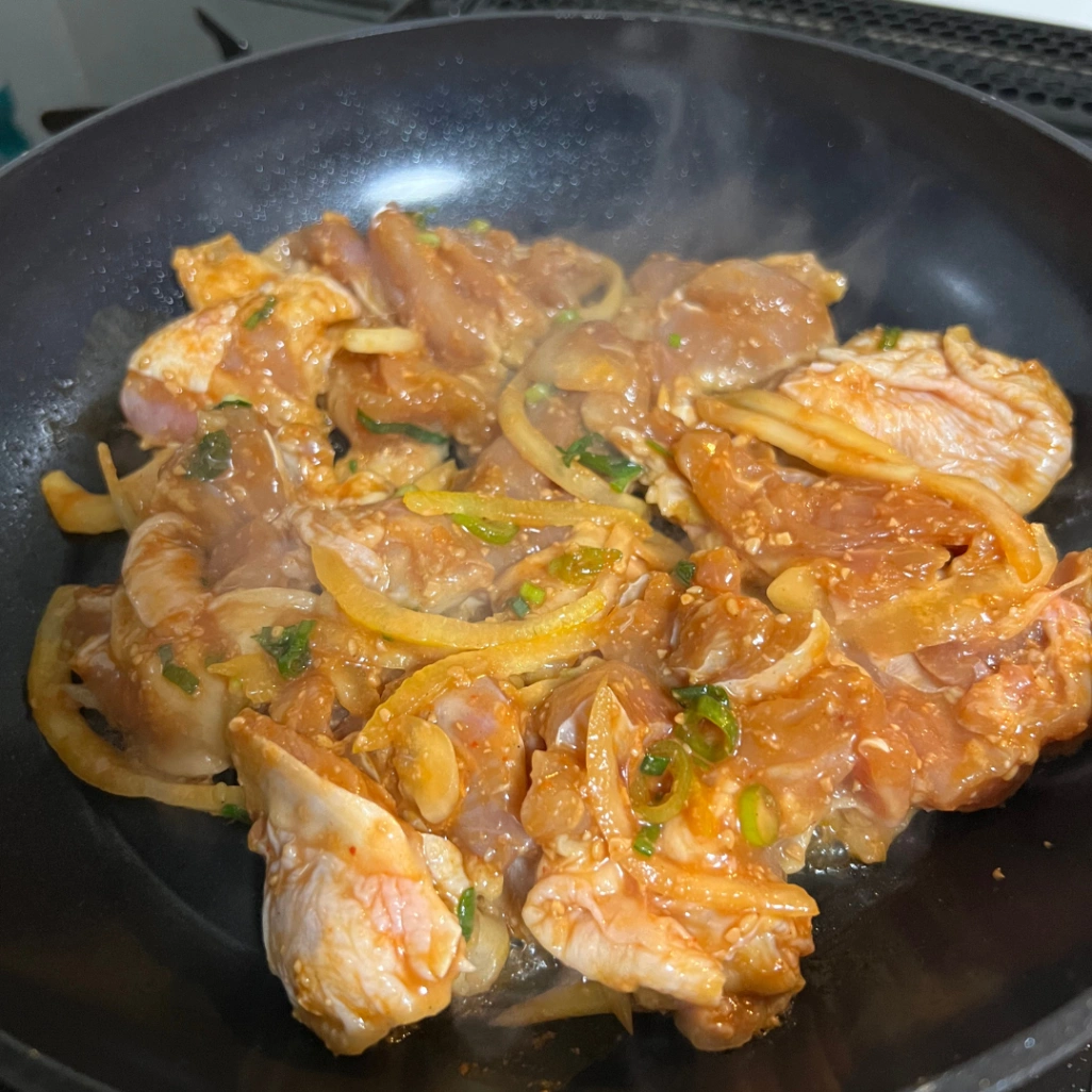 フライパンに薄く油をひき、中火〜弱火でお肉を並べます。 フタをして蒸し焼きにすると、中までふっくら火が通り、焦げ付きも最小限に抑えられますよ。最後に少しだけ火を強めて、タレを煮絡めるのが正解です◎
