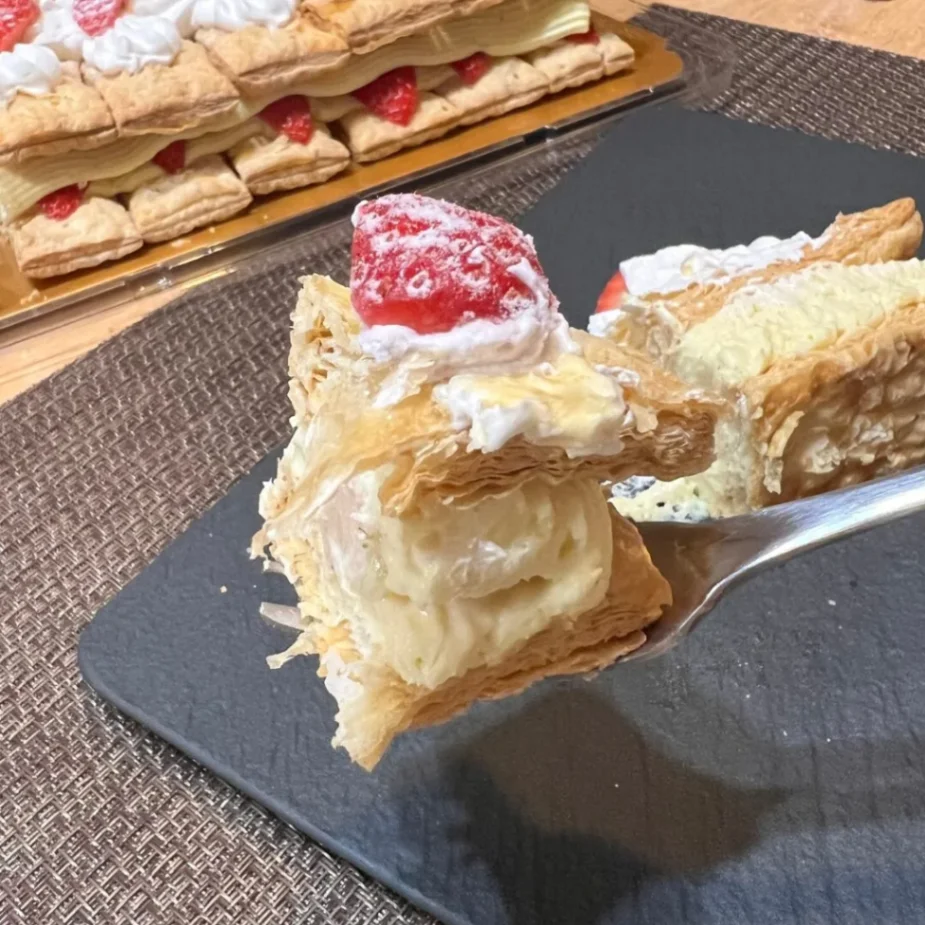 そんな心配を抱えるあなたへ、結論をズバリお伝えします。 このいちごのミルフィーユは、「甘さのバランスが絶妙で、見た目以上に軽やか」です!甘ったるい海外スイーツのようなしつこさは一切なく、日本人の口に合う上品な仕上がりになっています。