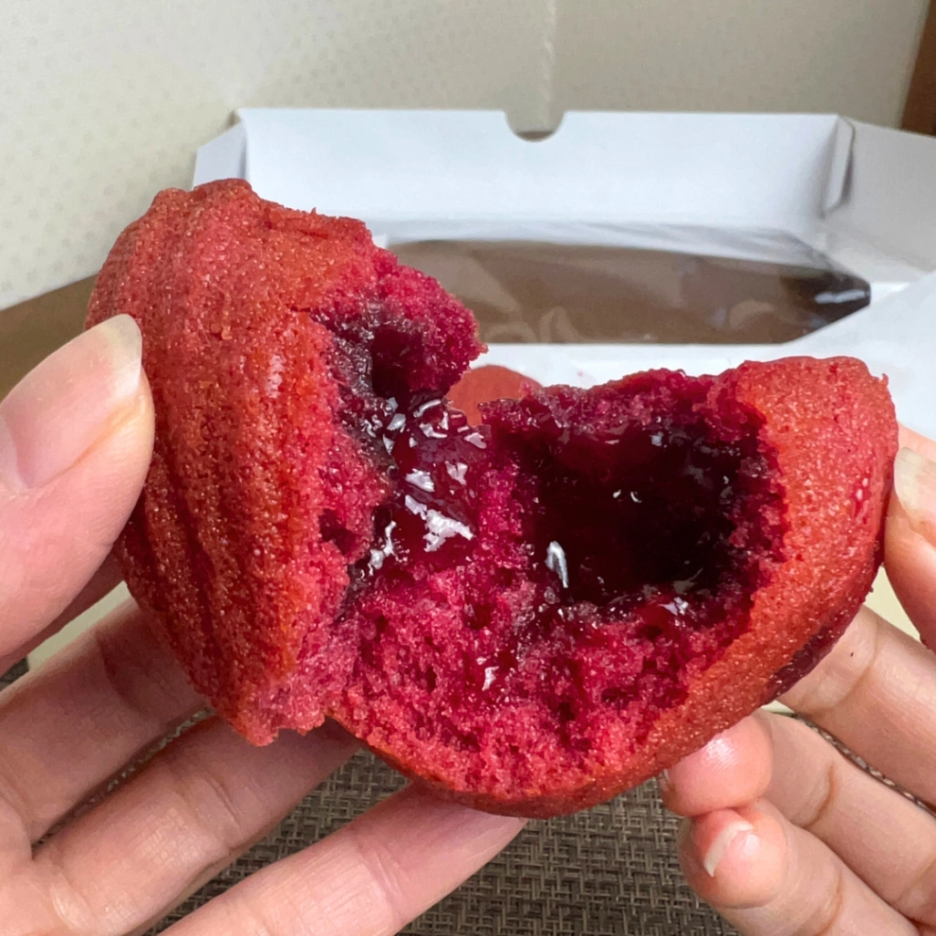 こちらは鮮やかなピンク色のフィリングが入っています。ラズベリー特有の「キュン」とするような酸味があって、ヘーゼルナッツよりは少し軽めに食べられる印象です。