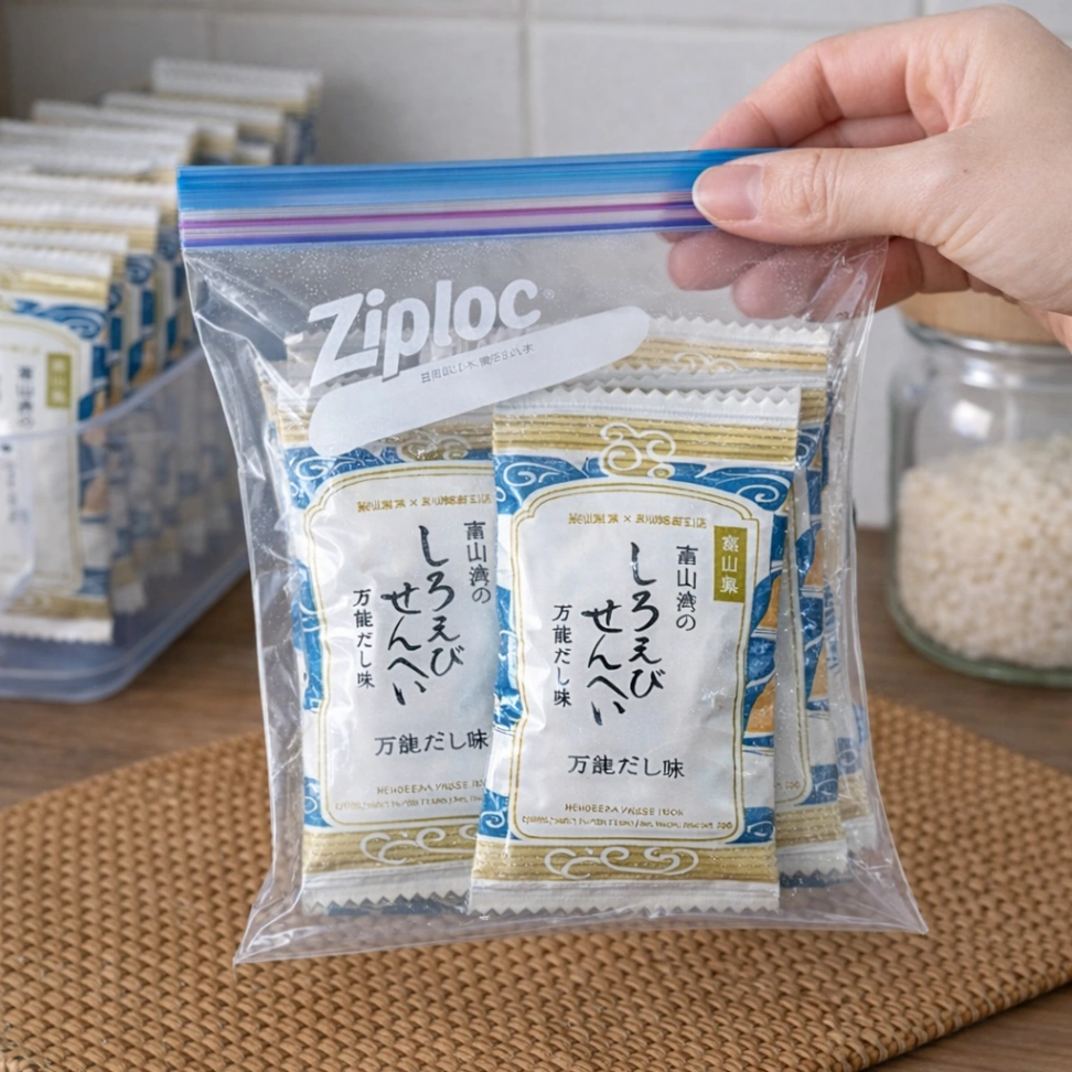 - 湿気対策: 万が一袋を開けて残してしまったら、すぐにジップロックへ!薄焼きなので湿気るのが早いです。