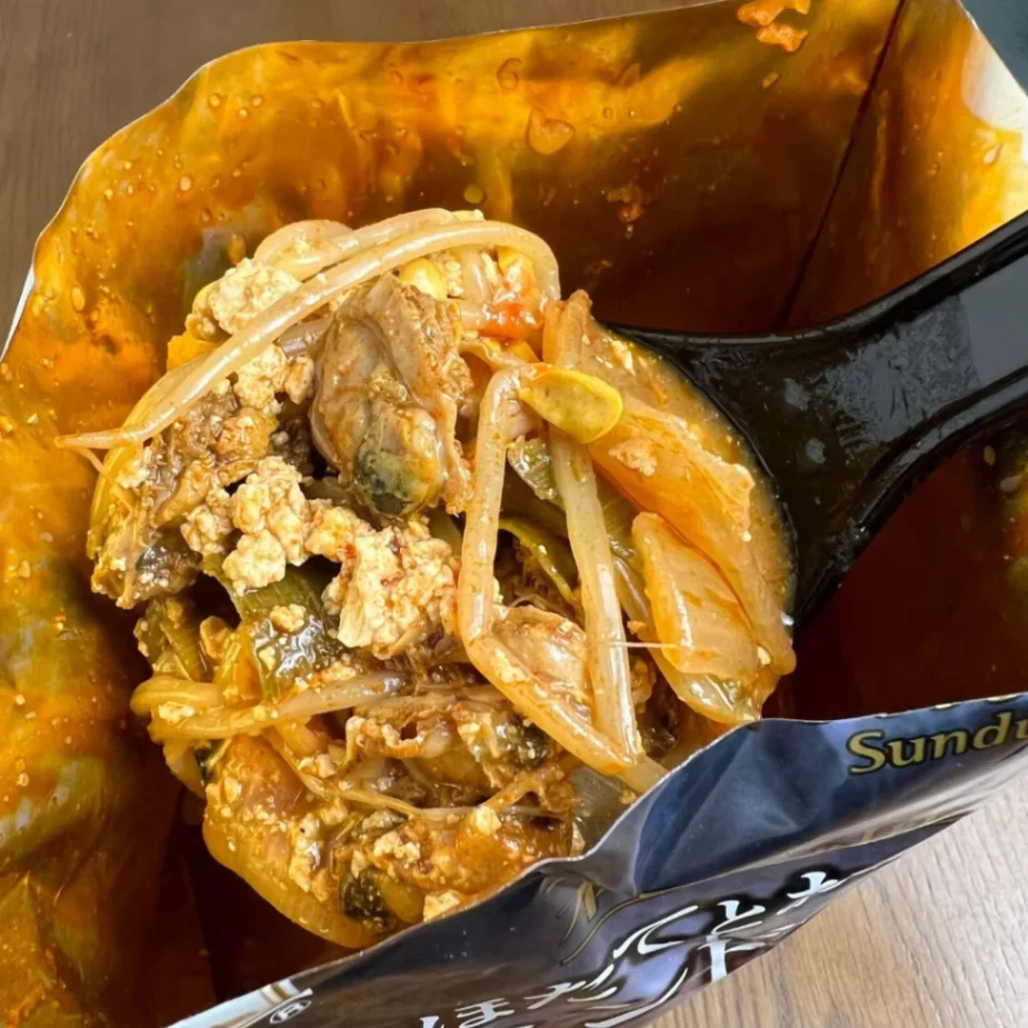 コスパを考えると、1人前約350円。外食でスンドゥブ定食を食べると1,000円前後はしますから、本格的な具材がこれだけ入ってこの価格は、かなりお買い得と言えるでしょう。