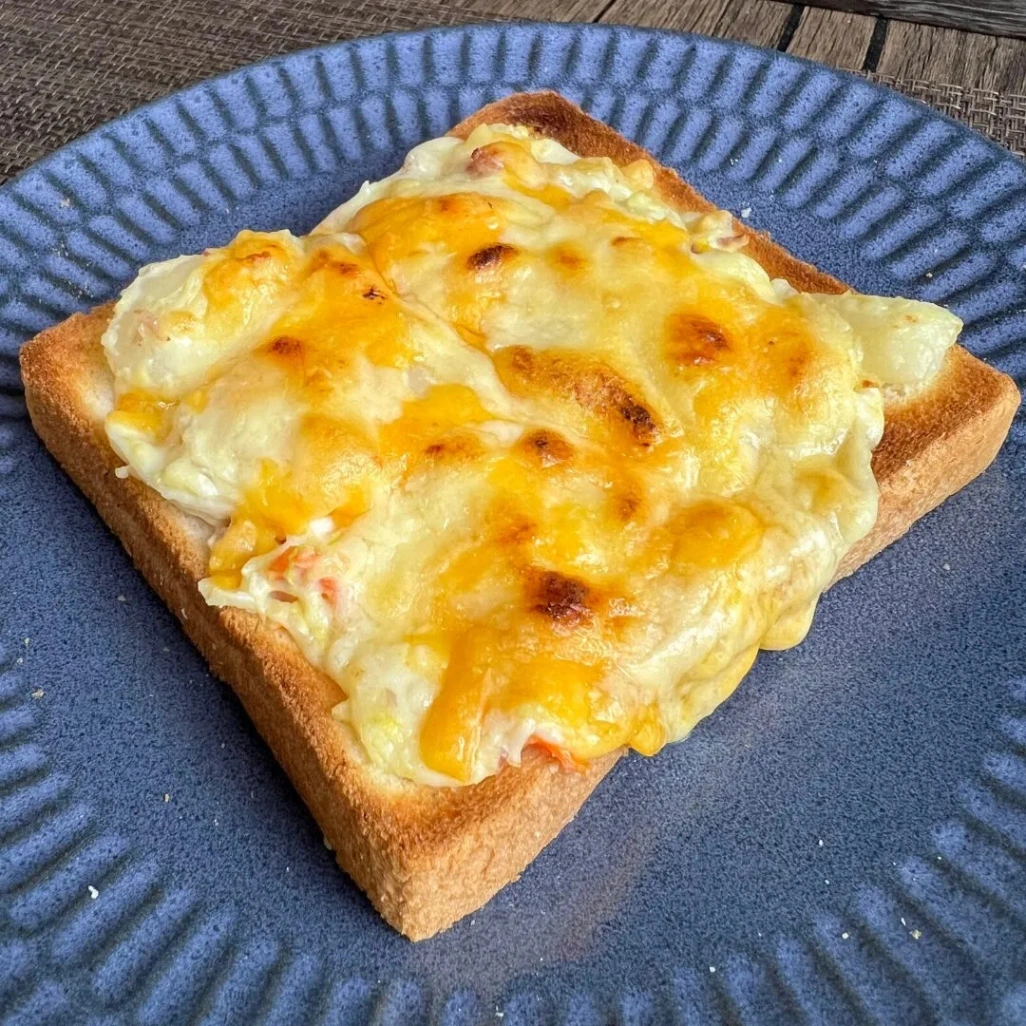実際にトーストに乗せて焼いてみると、「びよ〜ん」と伸びる白チーズと、ガツンとコクを出すオレンジチーズが混ざり合って、もうたまらないビジュアルに!