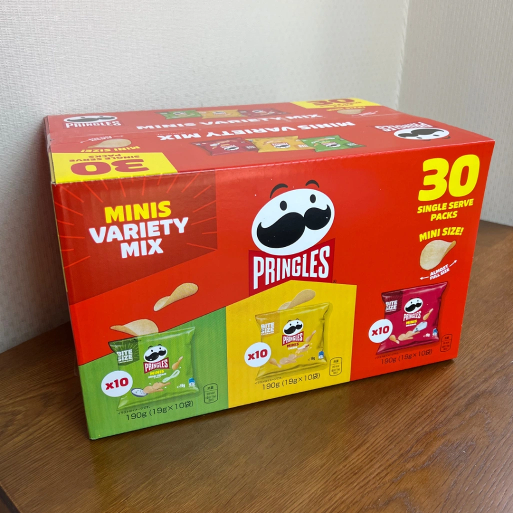 コストコのお菓子コーナーで、ひときわ大きな箱に入って売られている「プリングルズ ミニチップス バラエティミックス」。