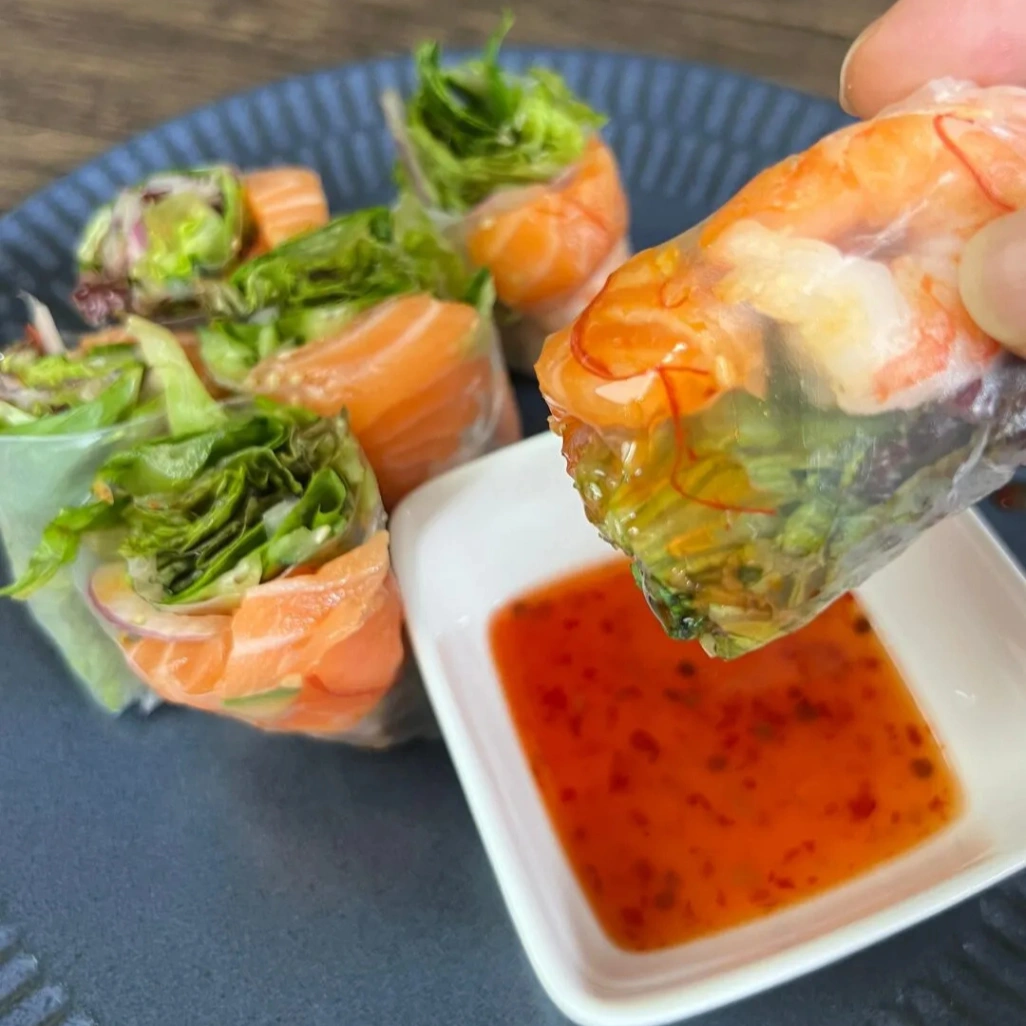 - 食感: 海老は「プリップリ」を通り越して「パキッ」とするほどの弾力!サーモンは脂が乗ってて「ねっとり」甘いです。