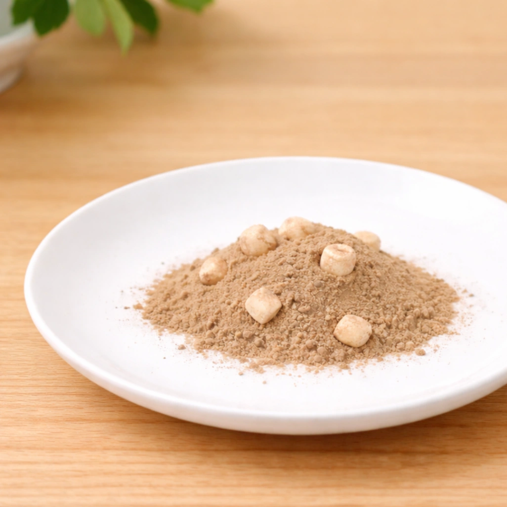 さっそく袋を開けると、中にはサラサラのココア粉末と、驚くほど小さい乾燥マシュマロがコロコロ入っています。