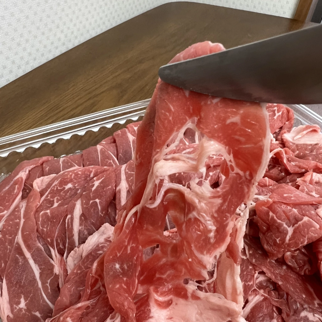 ただ、正直に気になった点も。 1枚がかなり大きいので、そのまま口に入れるとちょっと食べにくいかもしれません。また、肩ロースという部位の特性上、たまに太いスジが混ざっていることがあるんです。お子様や高齢の方が食べる時は、調理前に少しカットしてあげると安心ですよ。